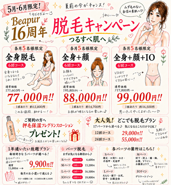 16周年脱毛キャンペーンも開催🎉